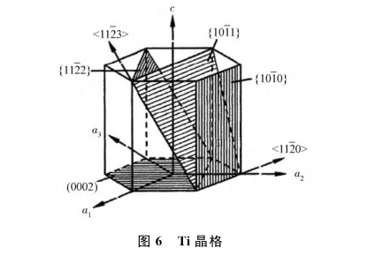 金屬鈦是密排六方結構,由于在濺射時鈦靶材原子容易沿著原子六方最緊密排列方向優(yōu)先濺射出來,因此,為達到最高濺射速率,可通過改變靶材結晶結構的方法來增加濺射速率。目前大多數(shù)集成電路鈦靶材濺射面{1013}晶面族為60%以上,不同廠家生產(chǎn)的靶材晶粒取向略有不同,鈦靶材的結晶方向對濺射膜層的厚度均勻性影響也較大(圖